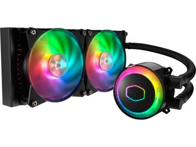 CoolerMaster MasterLiquid ML240L RGB V2, Close-Loop AIO CPU Liquid Cooler, 240 Radiator, Dual SickleFlow 120mm, RGB Lighting, 3rd Gen Dual Chamber Pump for AMD Ryzen/Intel LGA1200/1151