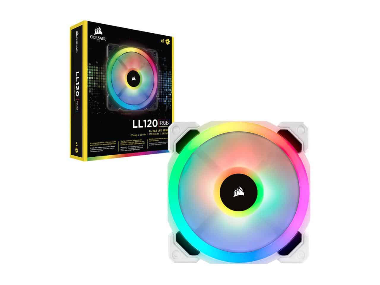 Corsair LL Series CO-9050091-WW LL120 RGB, 120mm Dual Light Loop RGB LED PWM Fan, Single Pack, White.