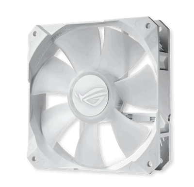 The ROG radiator fan is specifically tuned to deliver optimum performance with ROG Strix LC White Edition​ series radiators, generating 81CFM/5.0mm H2O for superior cooling efficiency.