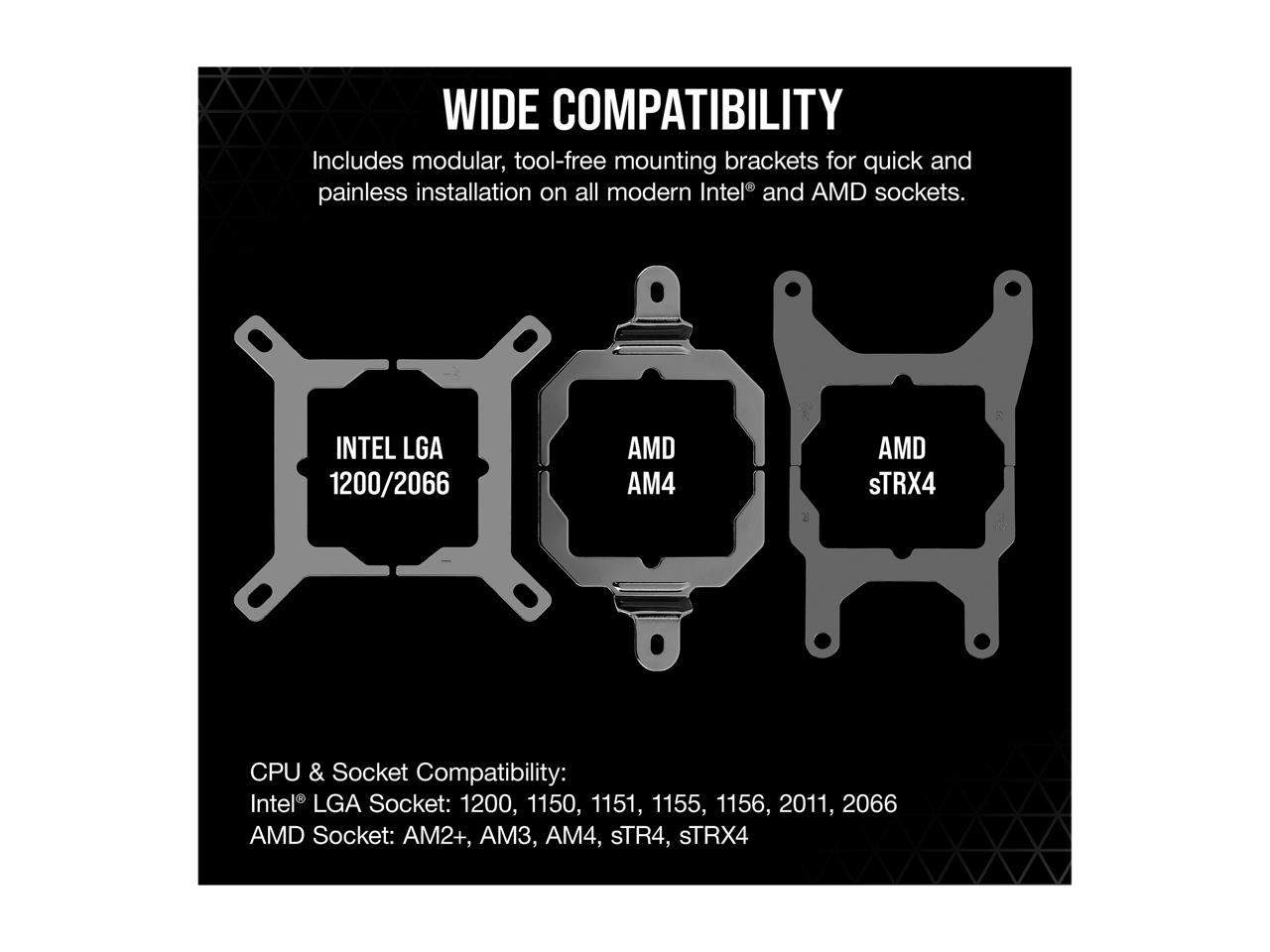 Modular, tool-free mounting bracket for quick and painless installation on all modern Intel and AMD sockets.