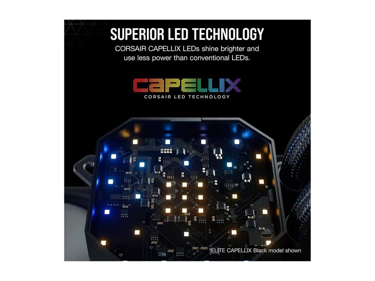 The ELITE CAPELLIX cooler pump head houses 33 ultra-bright CAPELLIX RGB LEDs to go along with its RGB fans. When you add powerful, low-noise cooling to the mix, your system will look great and will run even better.