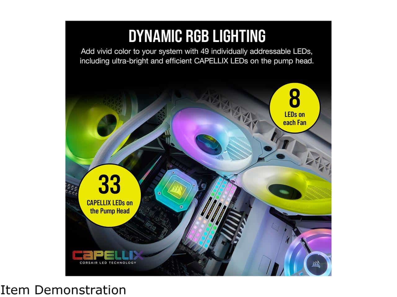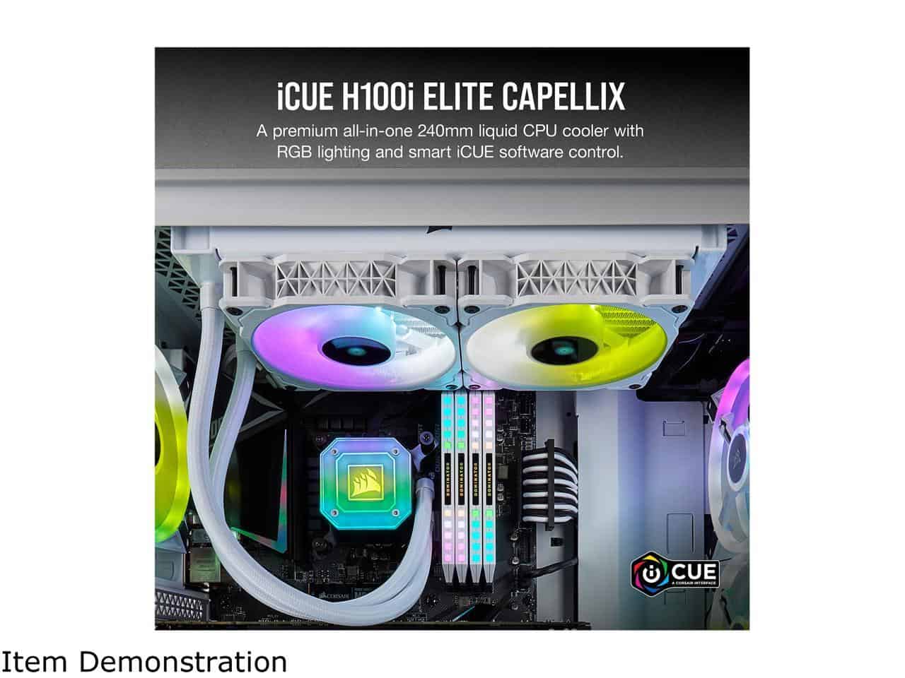 CORSAIR iCUE H100i ELITE CAPELLIX WHITE, 240mm Radiator, Liquid CPU Cooler, White, CW-9060050-WW