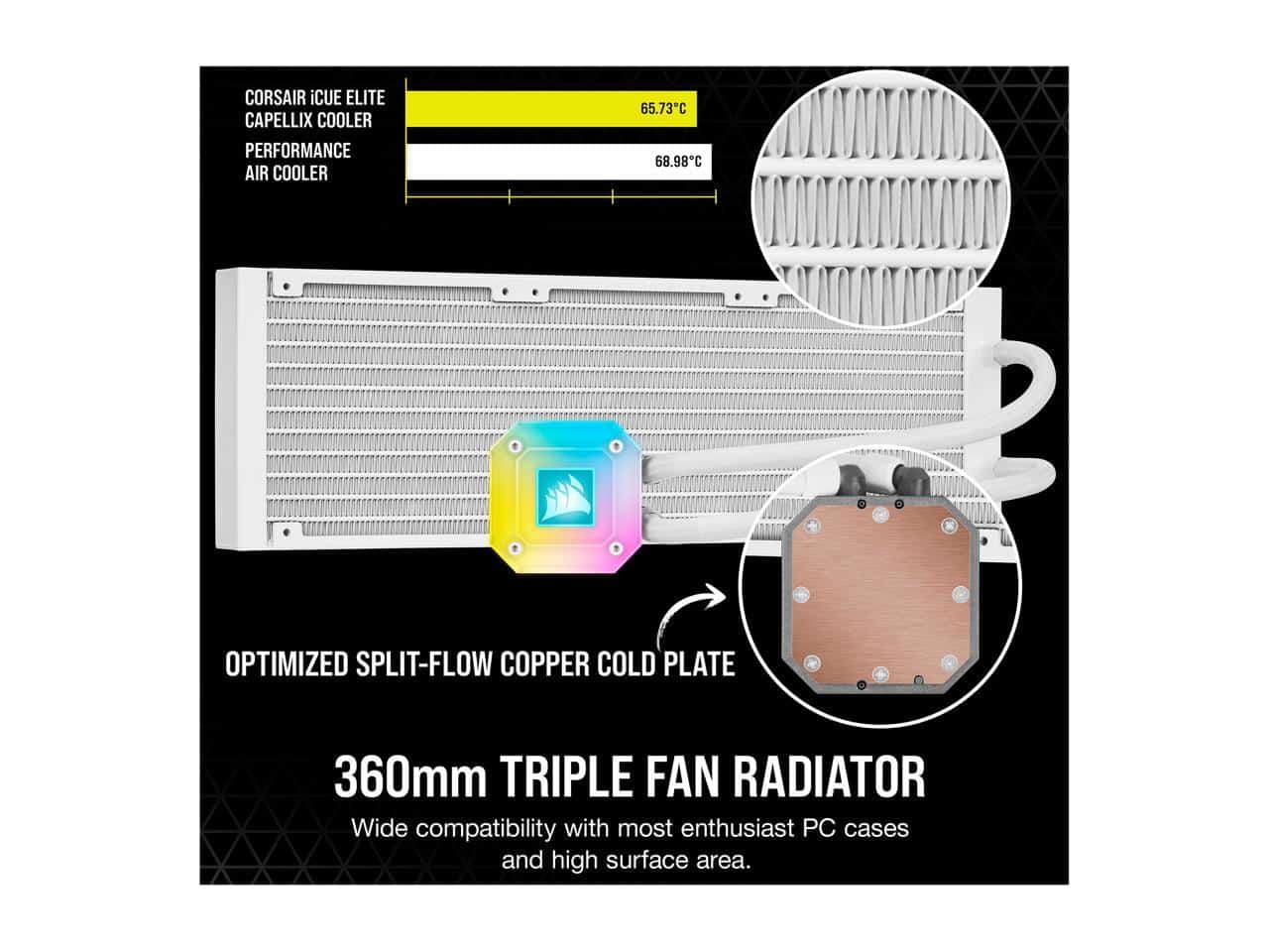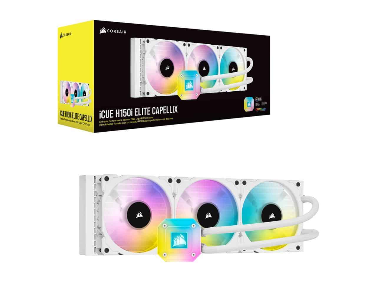 CORSAIR iCUE H150i ELITE CAPELLIX WHITE, 360mm Radiator, Liquid CPU Cooler, White, CW-9060051-WW