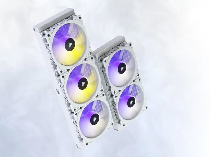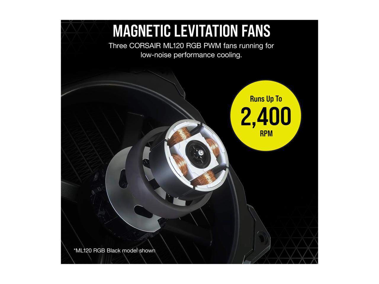 CORSAIR ML RGB Series PWM fans deliver powerful airflow for extreme CPU cooling performance, with eight RGB LEDs per fan. These premium magnetic levitation bearing fans are available for the first time with a beautiful white finish in iCUE ELITE CAPELLIX coolers.