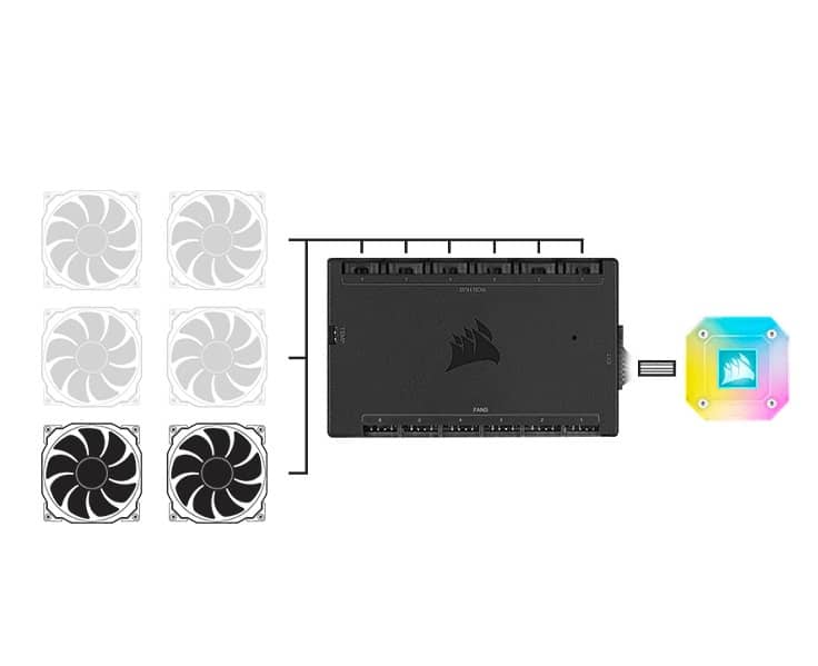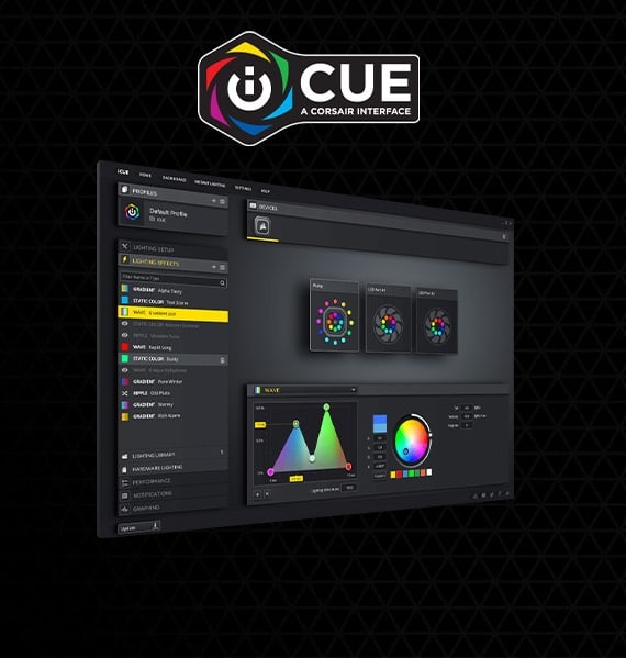 Harness the power of iCUE with the included iCUE Commander CORE to control the fan speed and RGB lighting for the included ML RGB fans, with the potential to control additional CORSAIR RGB fans, up to a total of six.