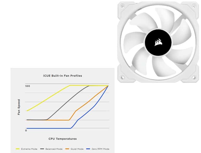 Zero RPM cooling profiles in CORSAIR iCUE software allow fans to stop entirely at low temperatures, eliminating fan noise.