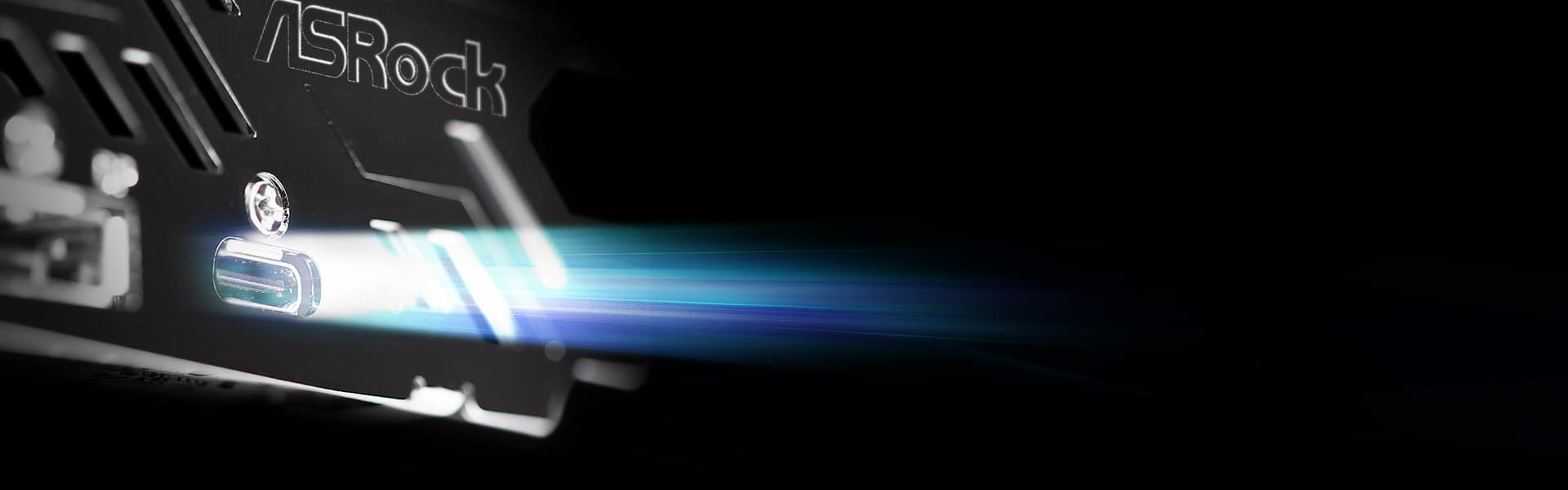 With the integrated ARGB LEDs, you can create your own unique colorful light effects which can also be switched on and off. It can also be synchronized with your ASRock motherboards that support Polychrome SYNC.