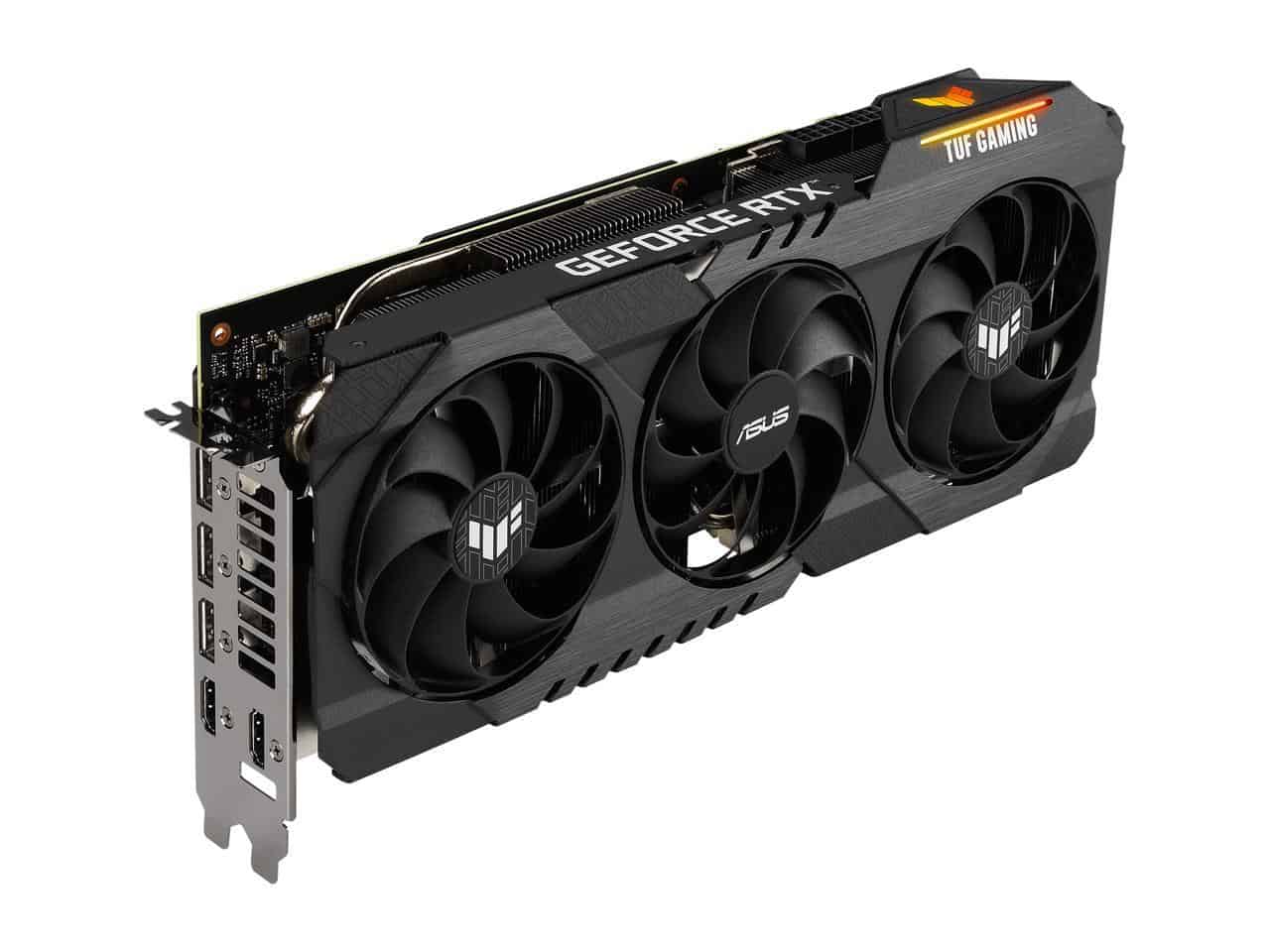 The TUF GAMING GeForce RTX™ 3070 Ti has been stripped down and built back up to provide more robust power and cooling. A new all-metal shroud houses three powerful axial-tech fans that utilize durable dual ball fan bearings. Fan rotation has been optimized for reduced turbulence, and a stop mode brings all three fans to a halt at low temps. Beneath, independent heatsinks for the GPU and memory keep thermals under tight control. Additional features, including TUF components, Auto-Extreme Technology, a new GPU bracket, and a backplate vent make the TUF a proper powerhouse. For builders looking for a new “old faithful”, this card has your back.