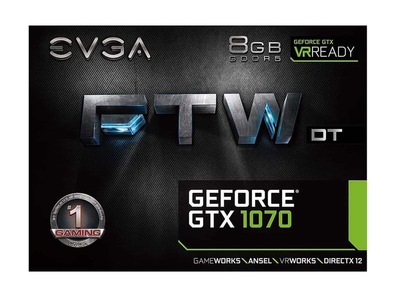 EVGA GeForce GTX 1070 FTW DT GAMING ACX 3.0, 8GB GDDR5, RGB LED, 10CM FAN, 10 Power Phases, DX12, 08G-P4-6274-KR