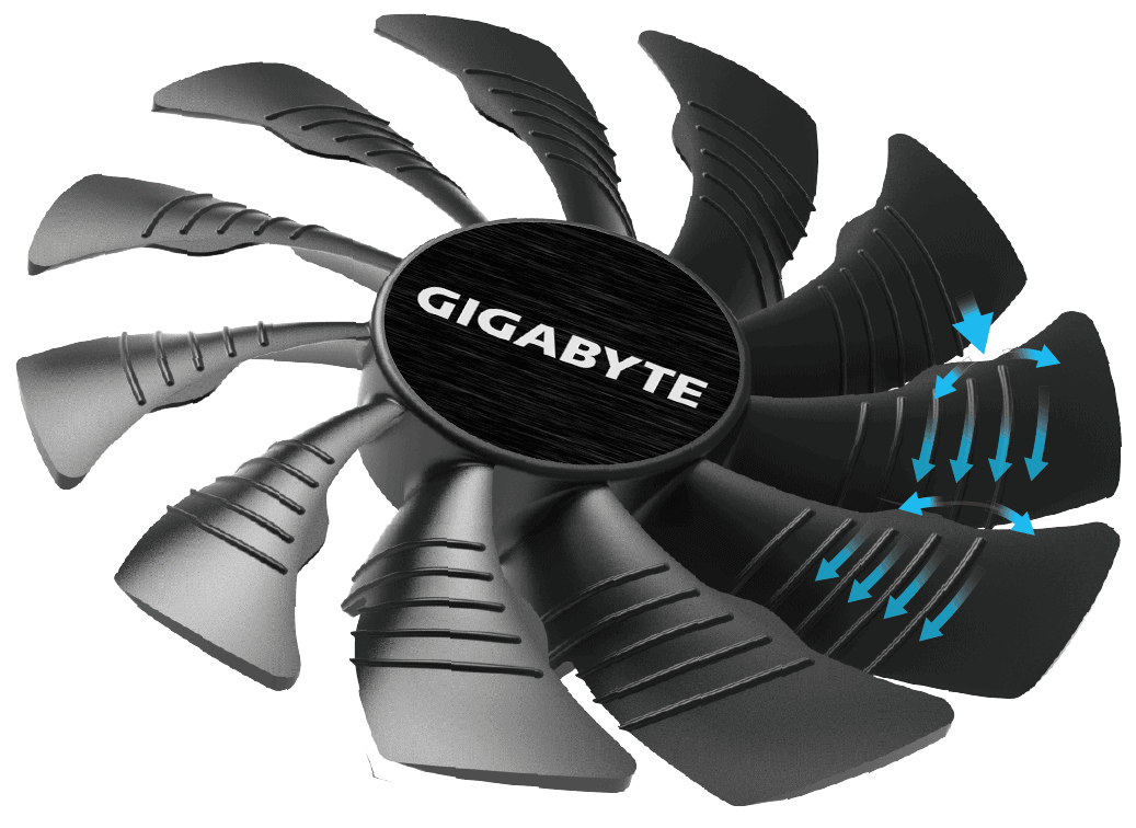 The WINDFORCE 3X cooling system features 3 unique blade fans, 5 composite copper heat pipes, heat-pipe direct touch and 3D active fan functionality, together delivering an effective heat dissipation capacity for higher performance at lower temperatures.