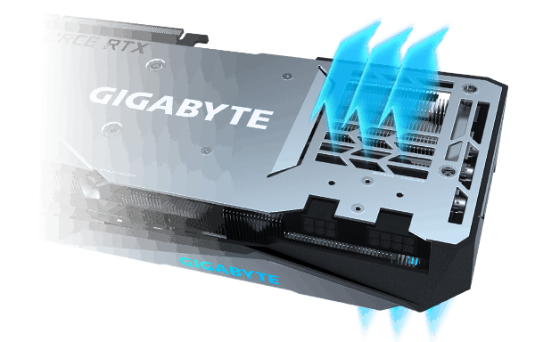 The metal back plate not only provides an aesthetical shape, but also enhances the structure of the graphics card to provide complete protection.