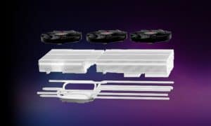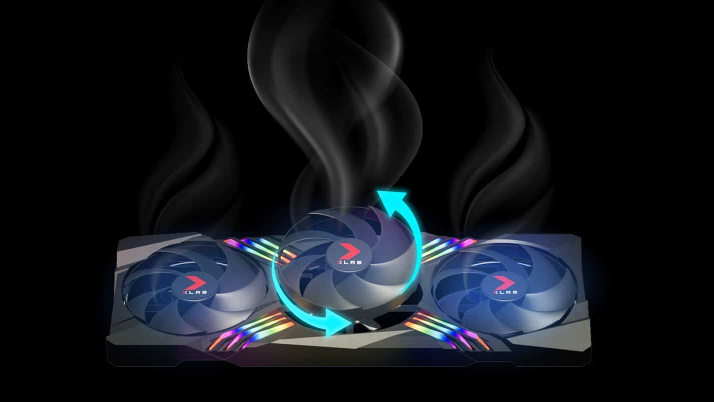 Adopts with 3 100mm double ball bearing round fans. Compare to traditional 90mm fans, offer 40% more airflow and gain 55% air pressure. In addition the round fan blade converge the airs to enhance thermal performance.