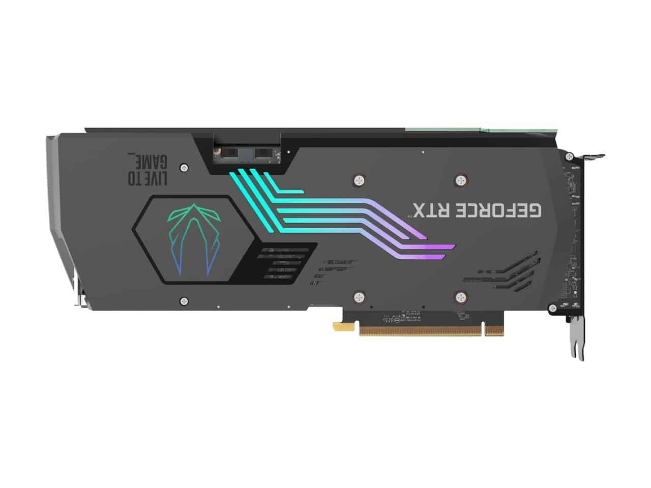 The design of ZOTAC GAMING GeForce RTX 3080 Ti Series underlines durability from front to back with a full-board metal frontplate and backplate to increase the overall card rigidity and structural integrity.