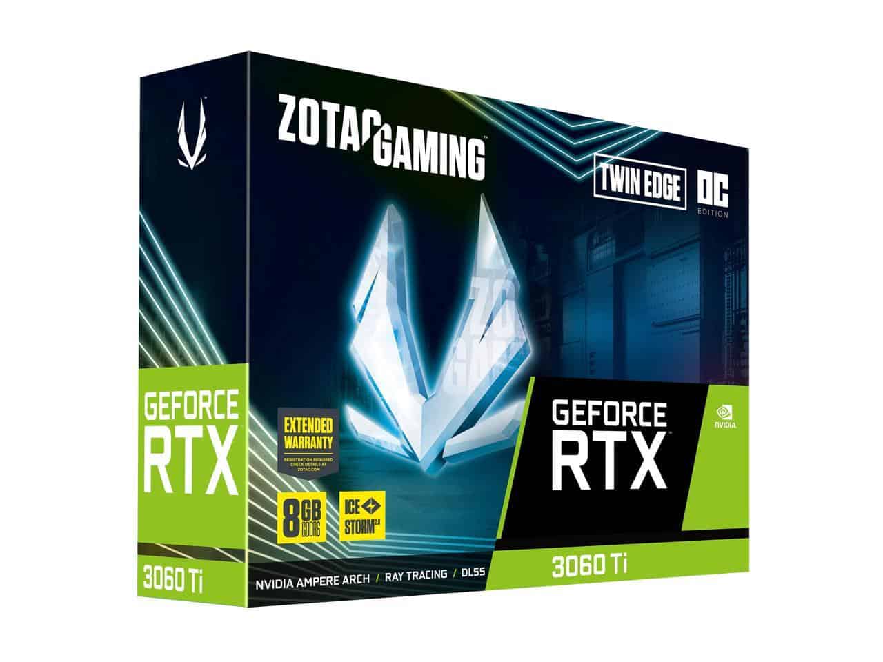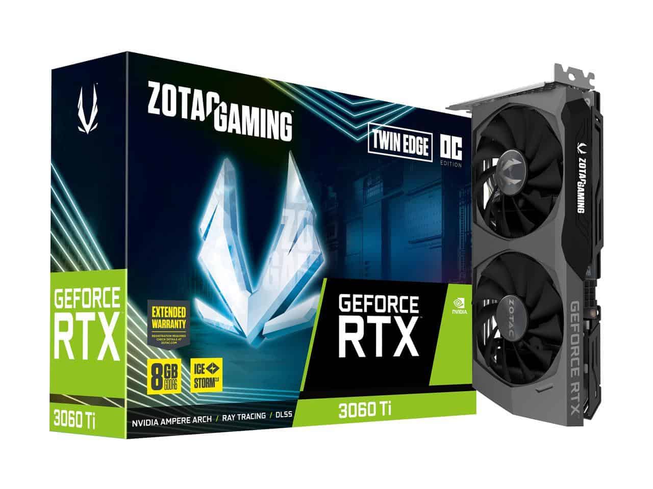 ZOTAC GAMING GeForce RTX 3060 Ti Twin Edge OC 8GB GDDR6 256-bit 14 Gbps PCIE 4.0 Gaming Graphics Card, IceStorm 2.0 Advanced Cooling, Active Fan Control, FREEZE Fan Stop ZT-A30610H-10M