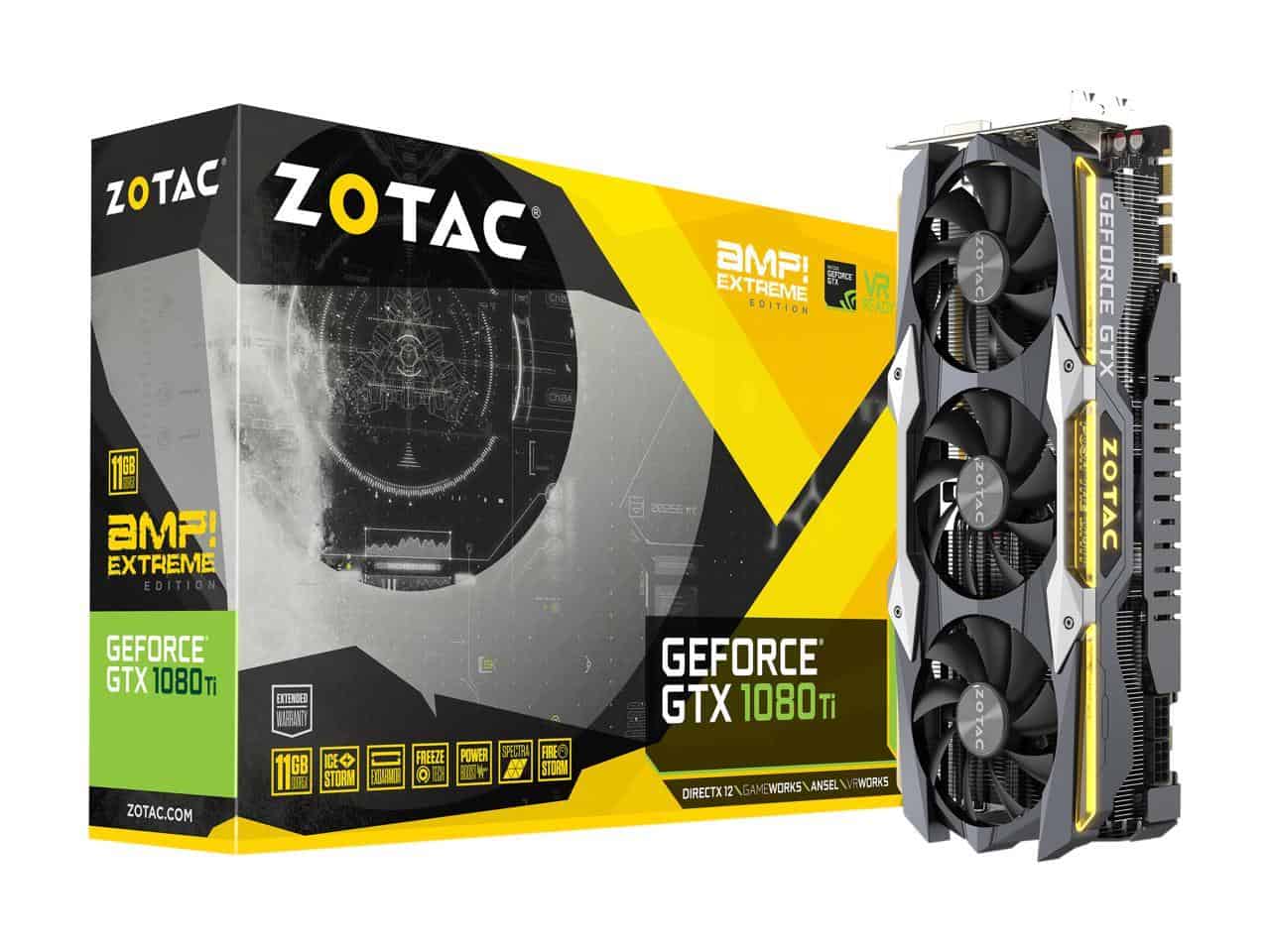 ZOTAC GeForce GTX 1080 Ti AMP Extreme 11GB GDDR5X 352-bit Gaming Graphics Card VR Ready 16+2 Power Phase Freeze Fan Stop IceStorm Cooling Spectra Lighting ZT-P10810C-10P