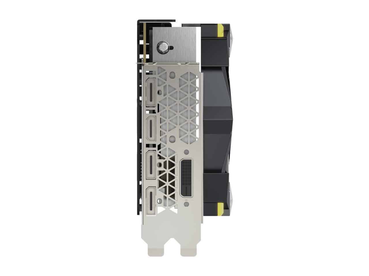 3 x DisplayPort (version 1.4), 1 x HDMI (2.0b), 1 x DL-DVI-D