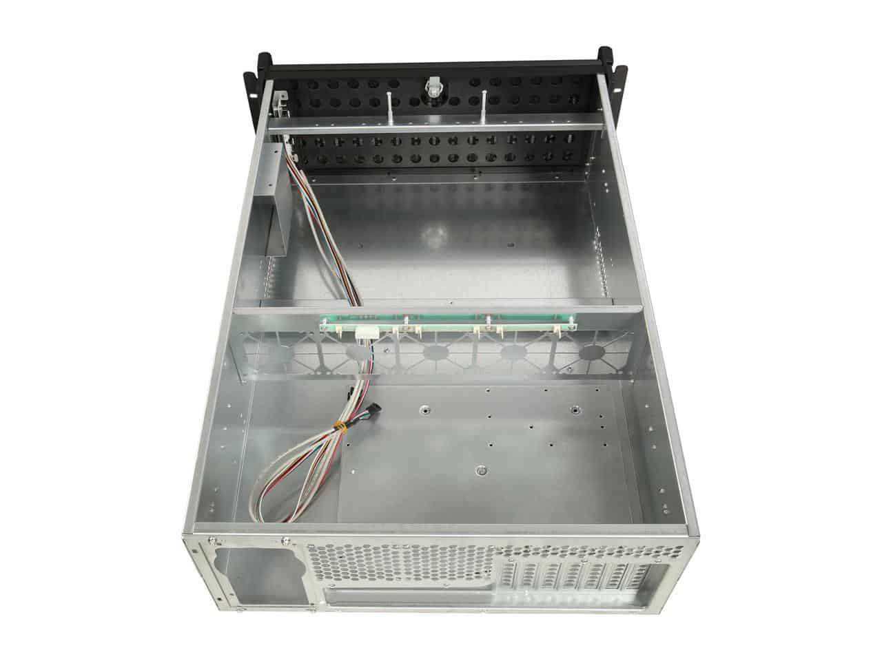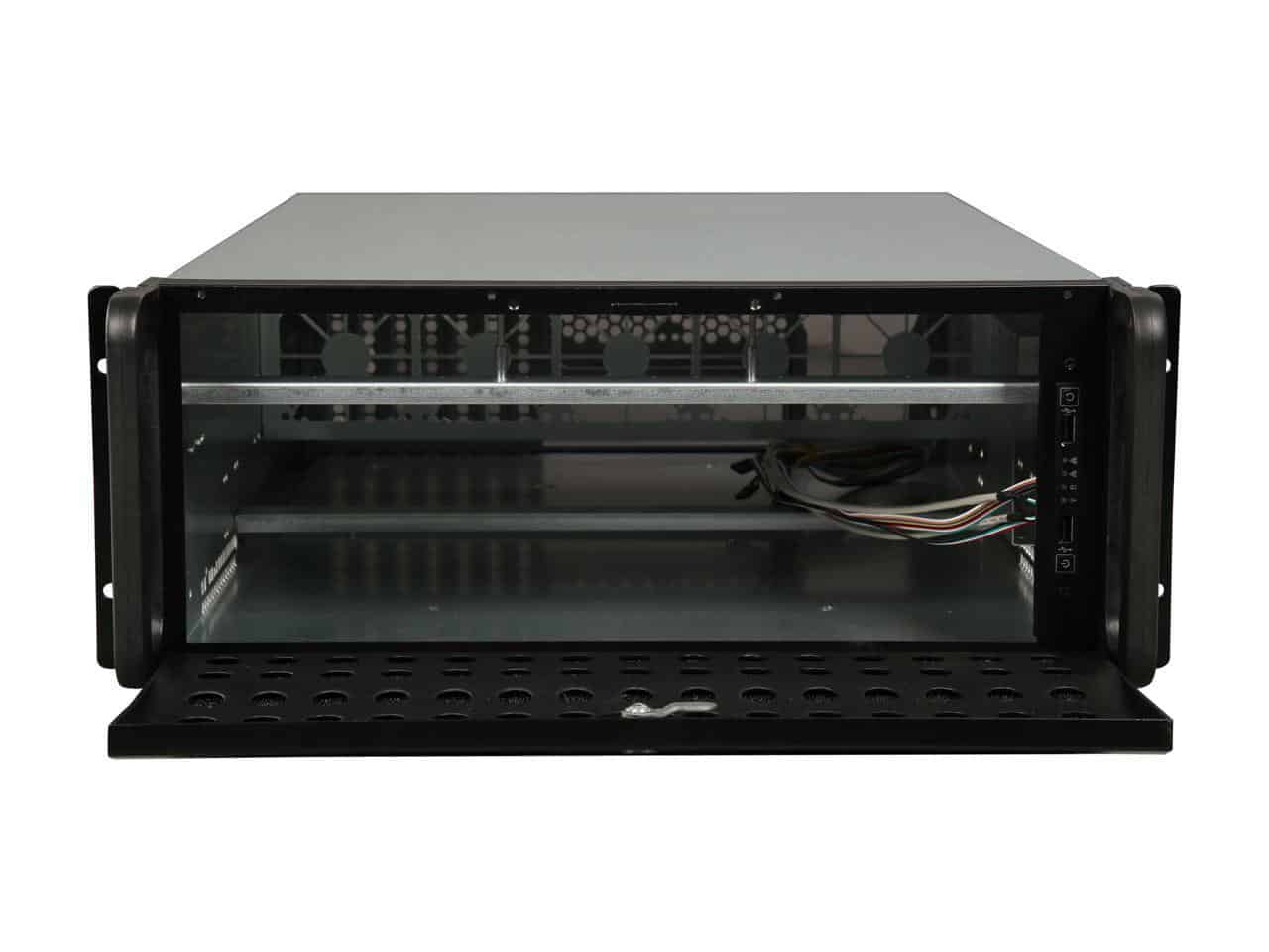The 4U rackmount server case is designed to allow you to install up to (8) 3.5″ HDDs and an additional (3) 5.25″ devices.