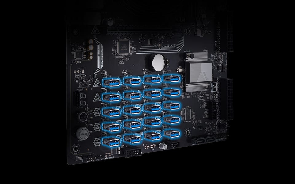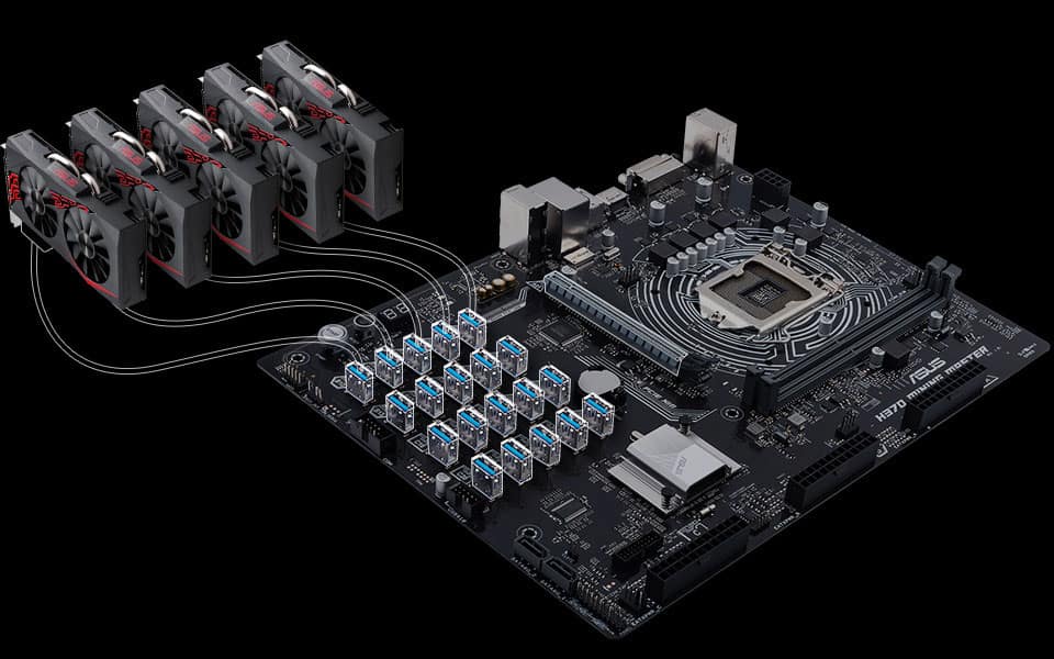 • Leading GPU-support for mining: Support for up to 20 graphics cards
