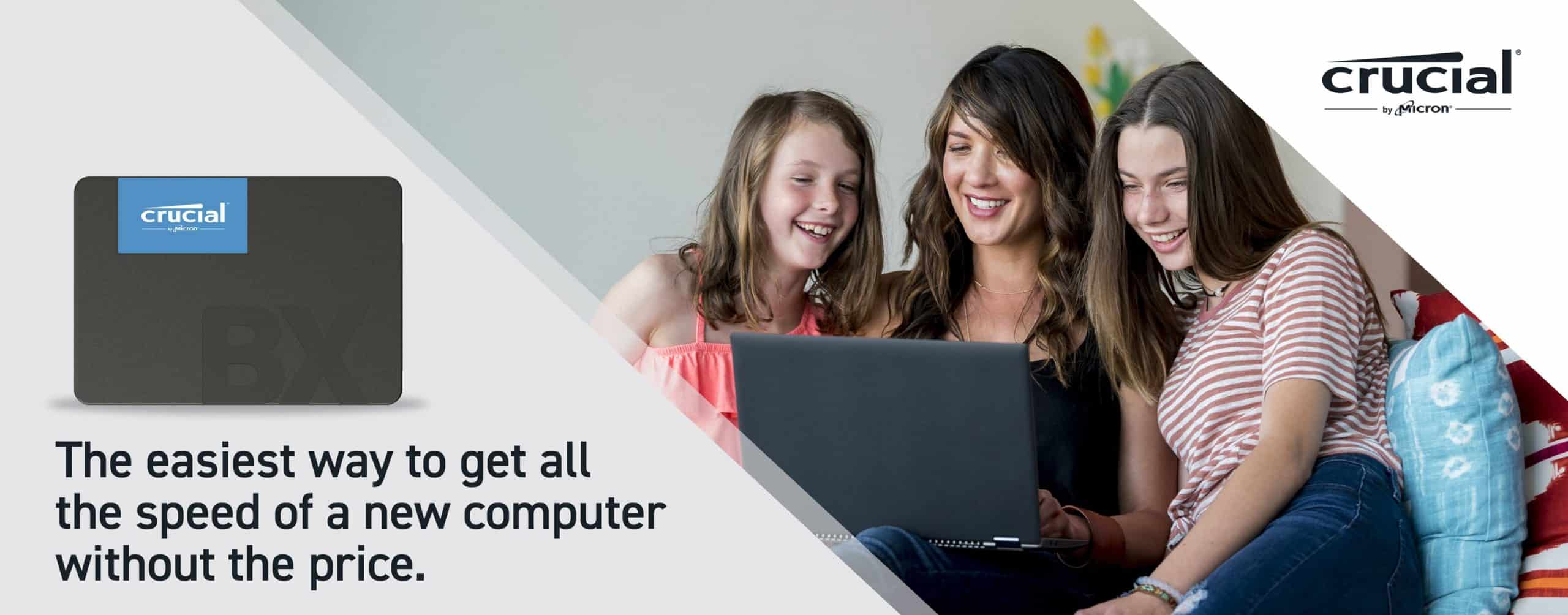 Ever wonder why your phone responds faster than your computer? It’s because your phone runs on flash memory. Add flash to your laptop or desktop computer with the Crucial® BX500 SSD, the easiest way to get all the speed of a new computer without the price. Accelerate everything.