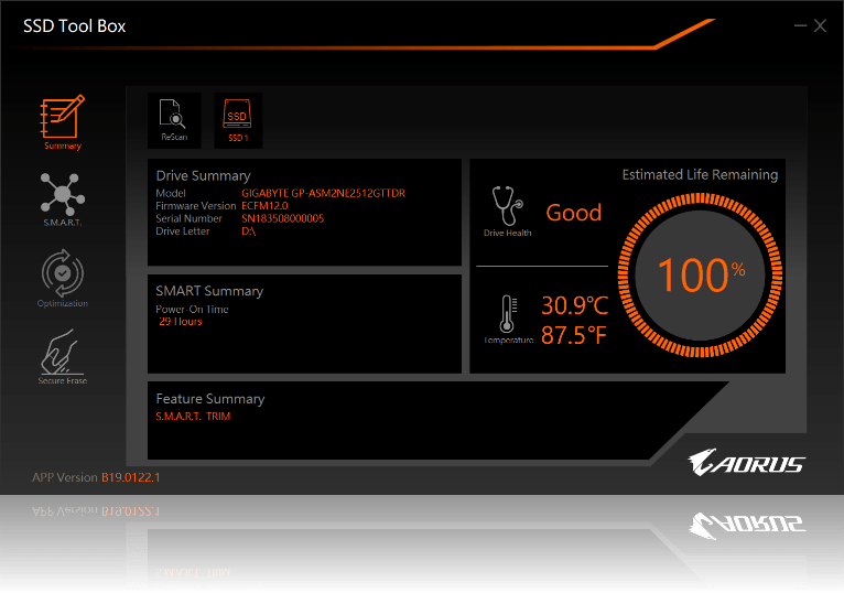 The newly updated SSD Tool Box is a software that gives users an overview of the SSD Status and various aspects such as model name, FW version, health condition and sensor temperature. Moreover, users can clear all the data with the Secure Erase function. You can download the SSD Tool Box from the link.
