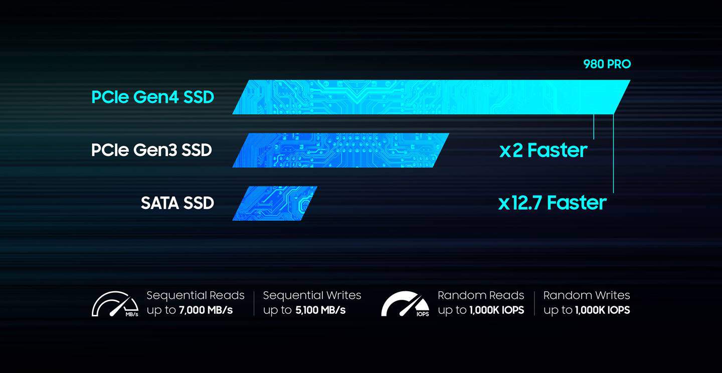 Unleash the power of the Samsung 980 PRO PCIe 4.0 NVMe SSD for next-level computing. 980 PRO delivers 2x the data transfer rate of PCIe 3.0, while maintaining compatibility with PCIe 3.0.