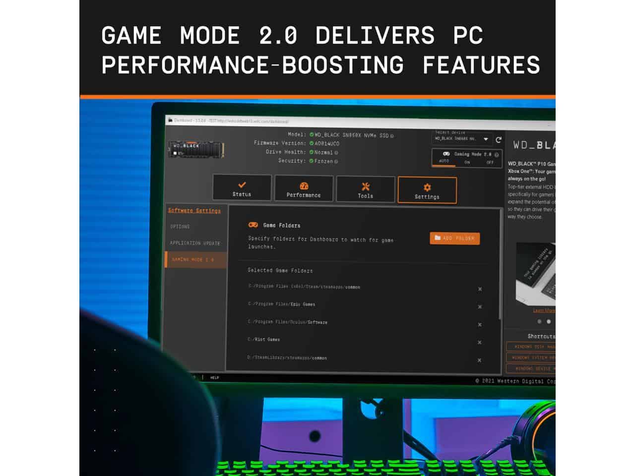 Strap in for breakneck gaming speeds with the WD_BLACK SN850X NVMe™ SSD. Crush load times and slash throttling, lagging, and model pop-ins for a smooth, fast experience that lets you compete at your absolute peak. This purpose-built gaming drive comes in capacities of 1TB to 4TB1, with an optional heatsink on the 1TB and 2TB drives to help sustain top-end performance for more consistent gameplay. With the advanced features of Game Mode 2.0 (Windows® only) plus speeds that approach the limits of the PCIe® Gen42 interface, the WD_BLACK SN850X NVMe SSD delivers top-tier performance to keep you playing, streaming, recording, and dominating the game.